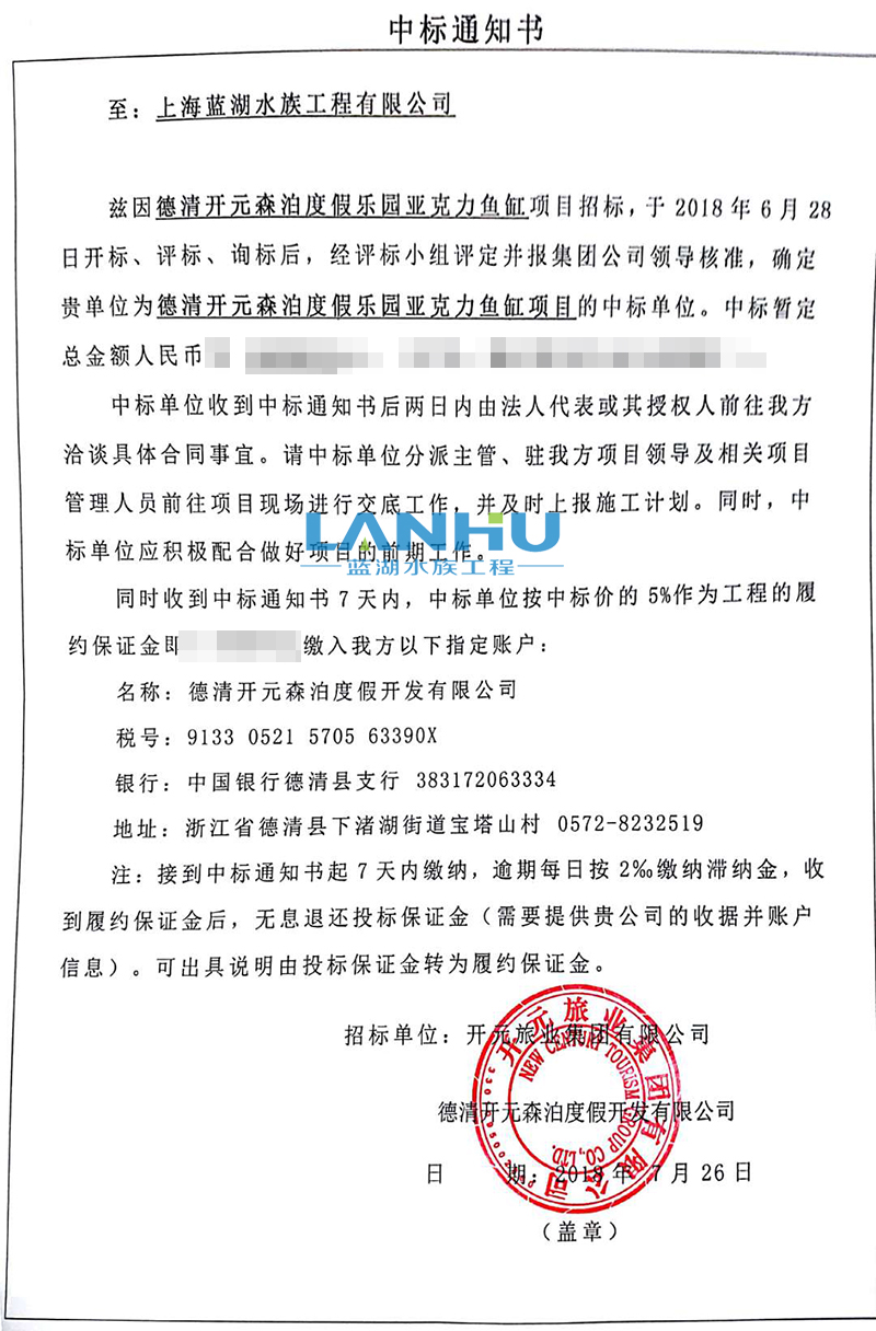 企業喜訊上海藍湖水族中標德清開元森泊度假樂園項目