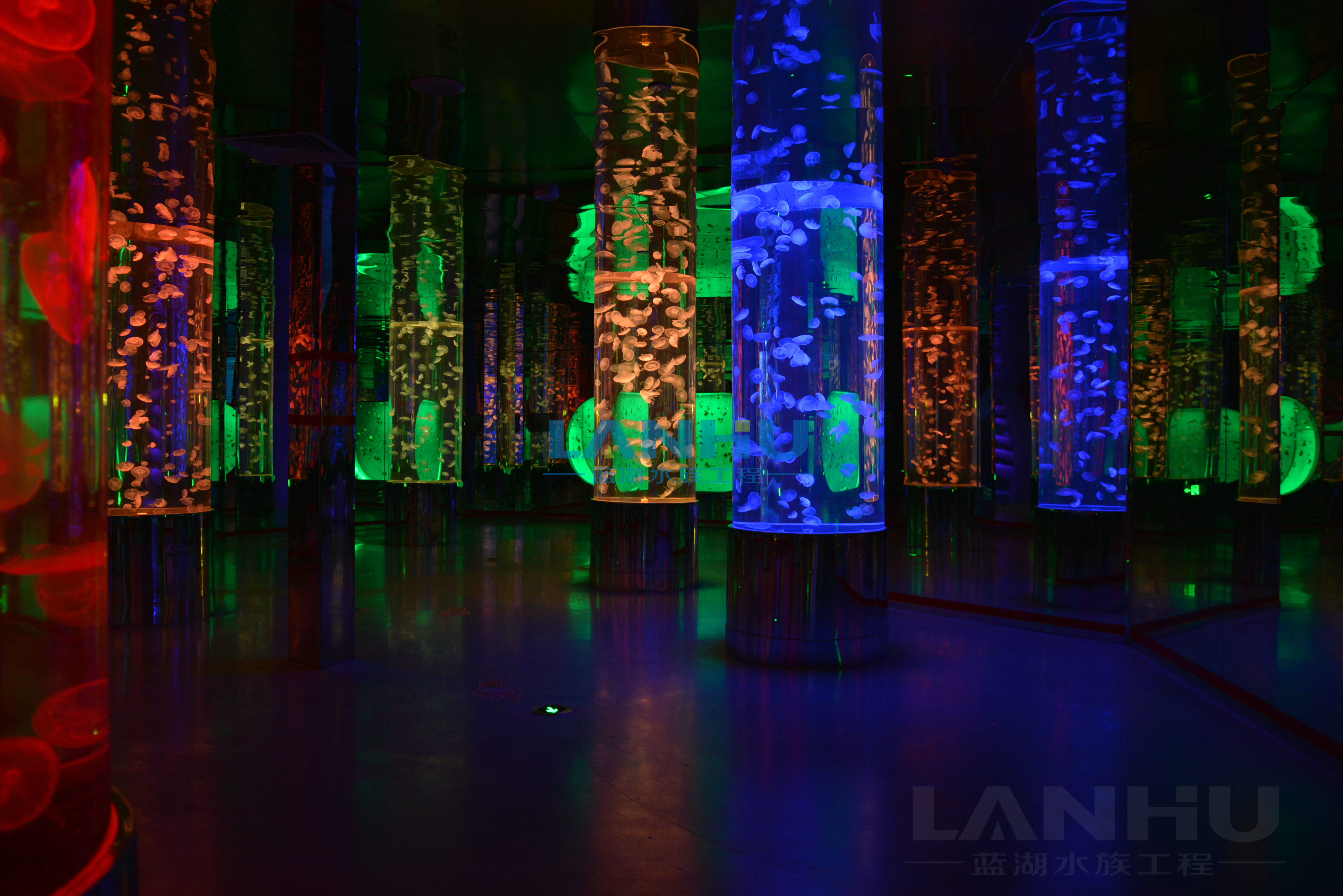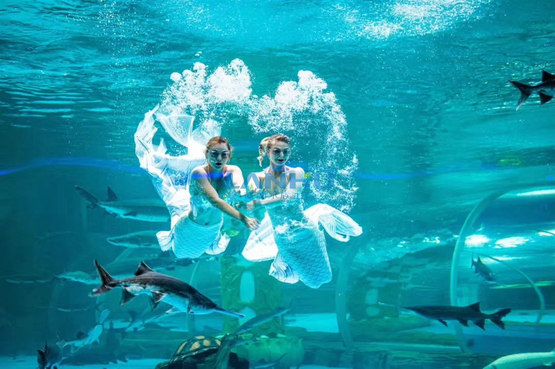 水族館的亞克力有機玻璃、LSS維生系統(tǒng)、造景、燈光照明由上海藍湖水族工程有限公司承建,